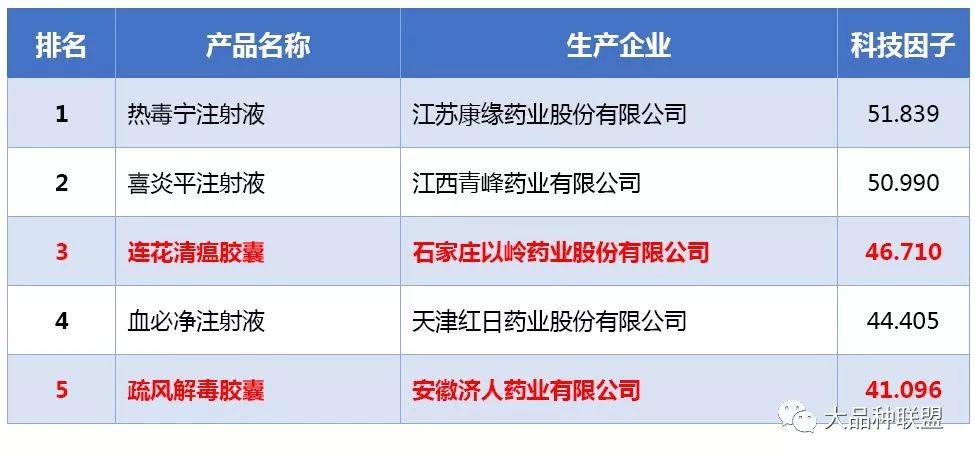 备注:以上数据来源于《中药大品种科技竞争力报告(2017版)》,金花清感颗粒系新上市产品未进行评估。